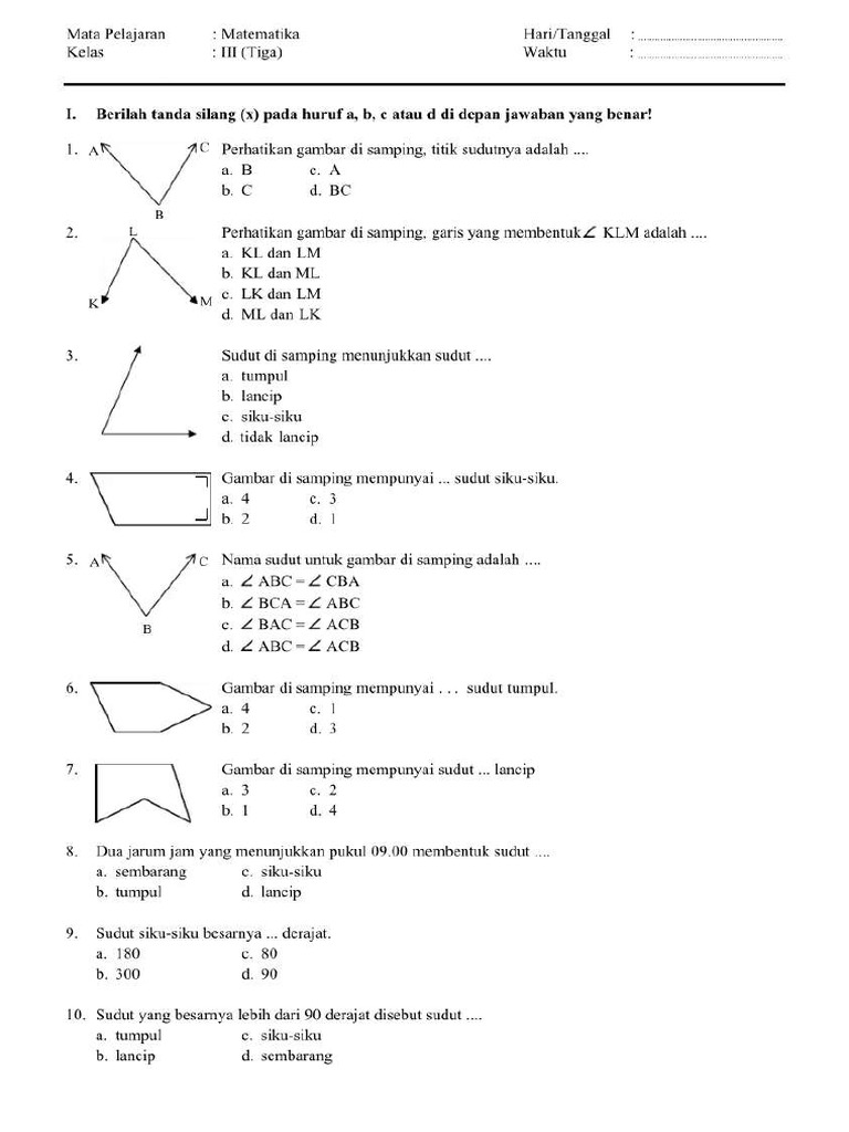 4. Yuk, Kita Latihan! Contoh Soal Sudut untuk Kelas 3 SD